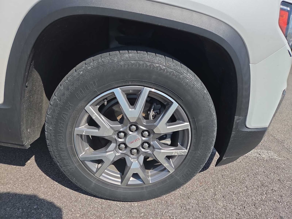 ENGINE, 3.6L V6, SIDI, DOHC with Variable Valve Timing (VVT) (310 hp [231.1 kW] @ 6600 rpm, 271 lb-ft of torque [365.9 N-m]) @ 5000 rpm, AUDIO SYSTEM, 8 DIAGONAL GMC INFOTAINMENT SYSTEM WITH NAVIGATION includes multi-touch display, AM/FM/SiriusXM stereo, Bluetooth® streaming audio for music and most phones, Android Auto® and Apple CarPlay® capability for compatible phones, advanced voice recognition, in-vehicle apps, personalized profiles for infotainment and vehicle settings (STD), TRANSMISSION, 9-SPEED AUTOMATIC, ELECTRONICALLY-CONTROLLED with 3.6L V6 engine. GMC SLT with White Frost Tricoat exterior and Cocoa/Light Ash Gray interior features a V6 Cylinder Engine with 310 HP at 6600 RPM*.